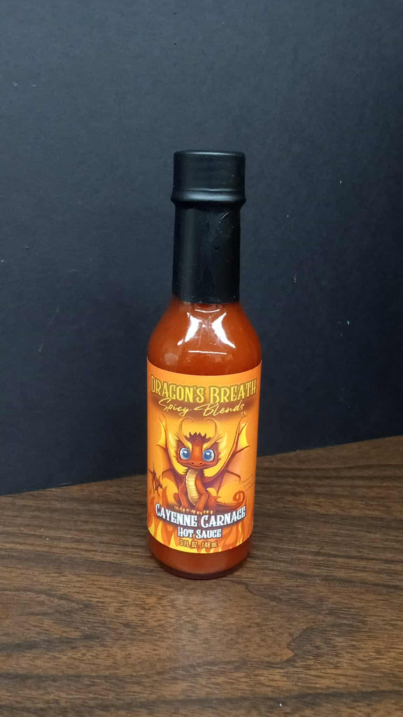 Drench your favorite dishes in this elixir for a taste adventure like no other. ?Whether you're drizzling it on grilled meats, adding a kick to your tacos, or even daring to dip with it, Cayenne Carnage Hot Sauce guarantees an unforgettable culinary journey. With just the right balance of heat and flavor, this elixir transforms every bite into a captivating crescendo of spice. Elevate your meals to legendary status with the unmatched intensity of Cayenne Carnage Hot Sauce -- a true testament to the power of culinary sorcery. All contained in a compact 5 oz bottle.